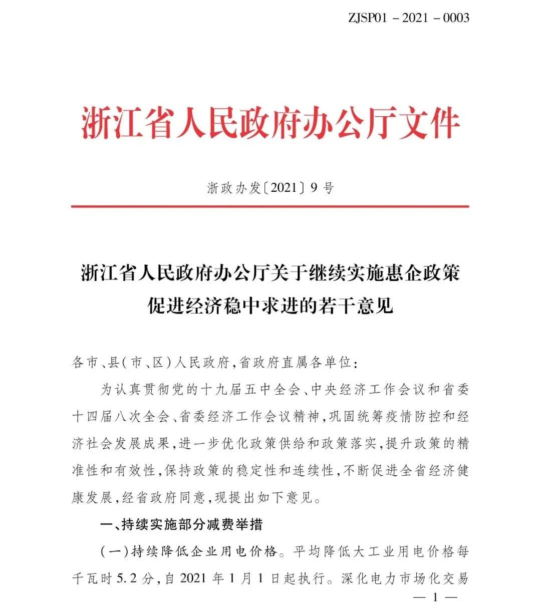 浙江省人民政府辦公廳關于繼續實施惠企政策促進經濟穩中求進的若干意見