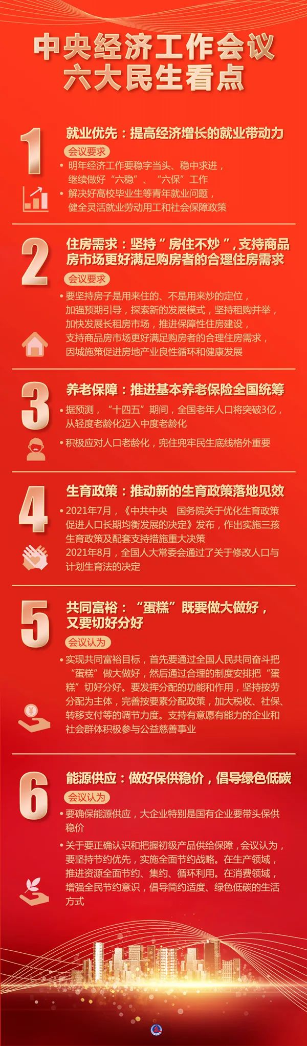 “社會政策要兜住兜牢民生底線”“要統籌推進經濟發展和民生保障”……圍繞人民群眾關心的就業、住房、養老、生育等民生問題,12月8日至10日在京舉行的中央經濟工作會議釋放一系列重要信息。