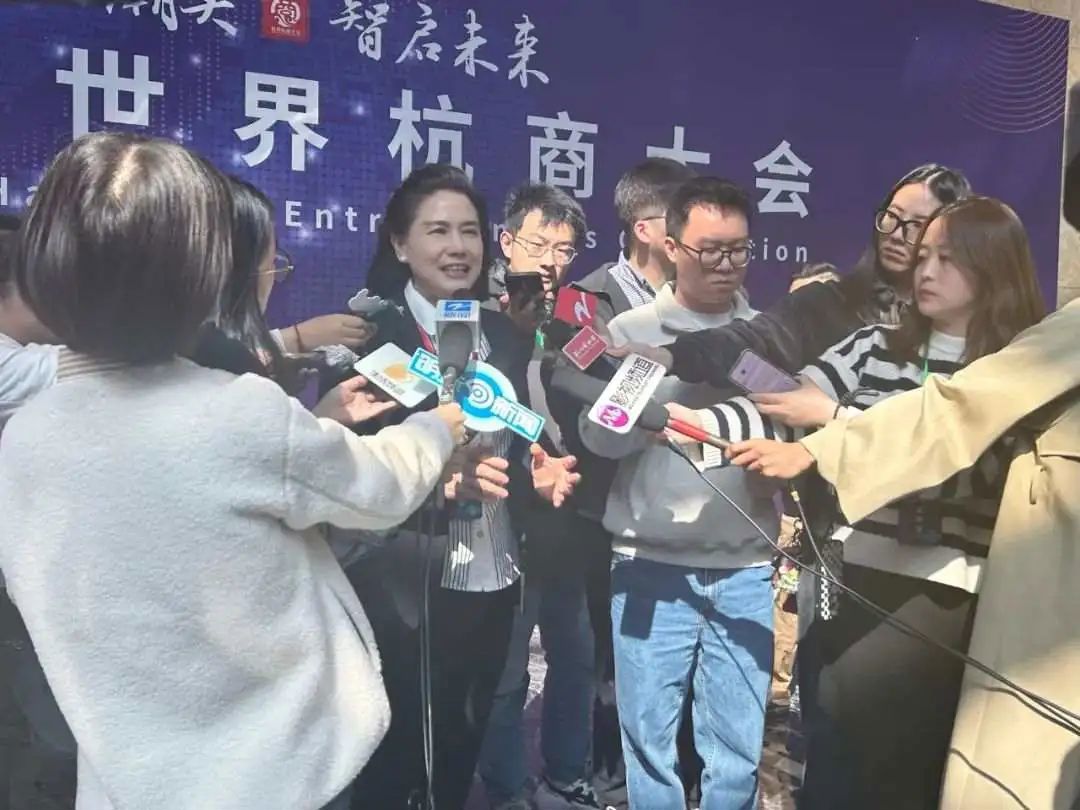 與會期間三替集團董事長陶曉鶯接受媒體采訪