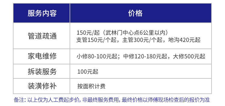 2. 以上價格僅為維修人工費,不包含材料配件費;如需材料配件,客戶可自買或與維修師傅溝通代買。