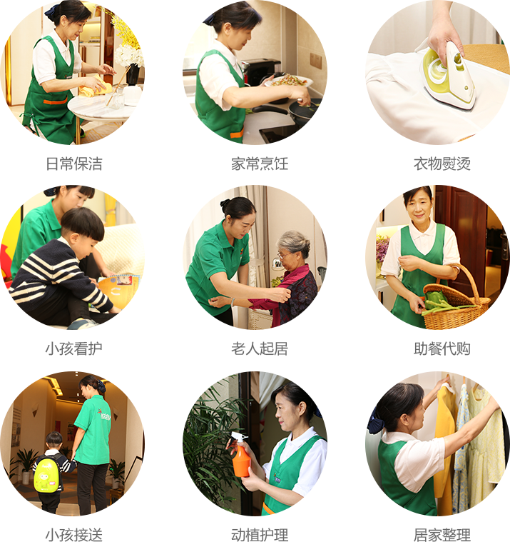 家庭保潔、洗衣熨燙、煲湯做飯的全日制家庭服務。