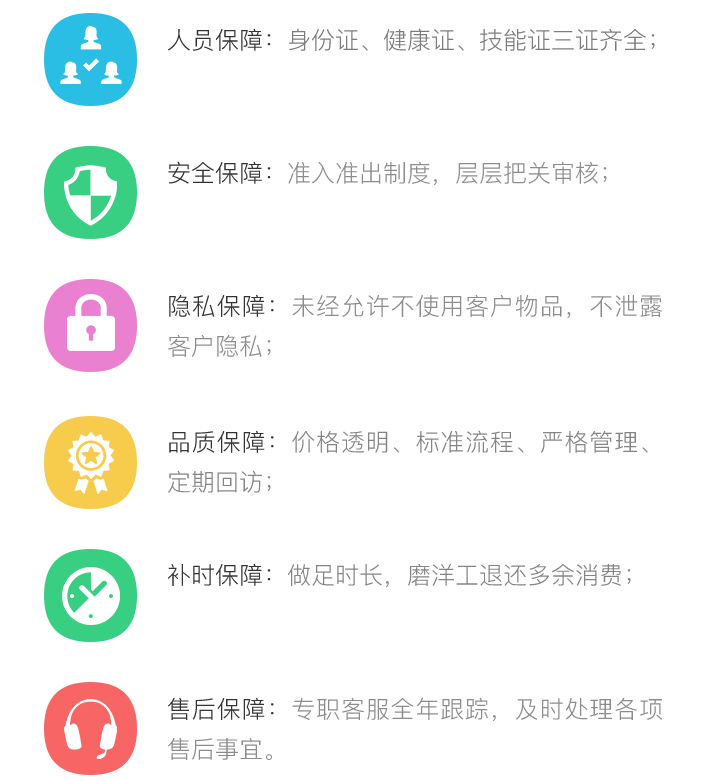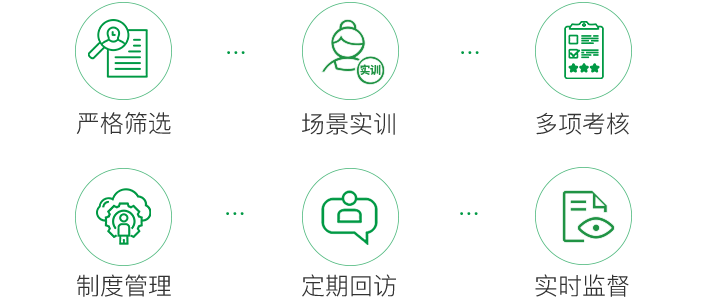 嚴格篩選、場景實訓、多項考核、制度管理、定期回訪、實時監督