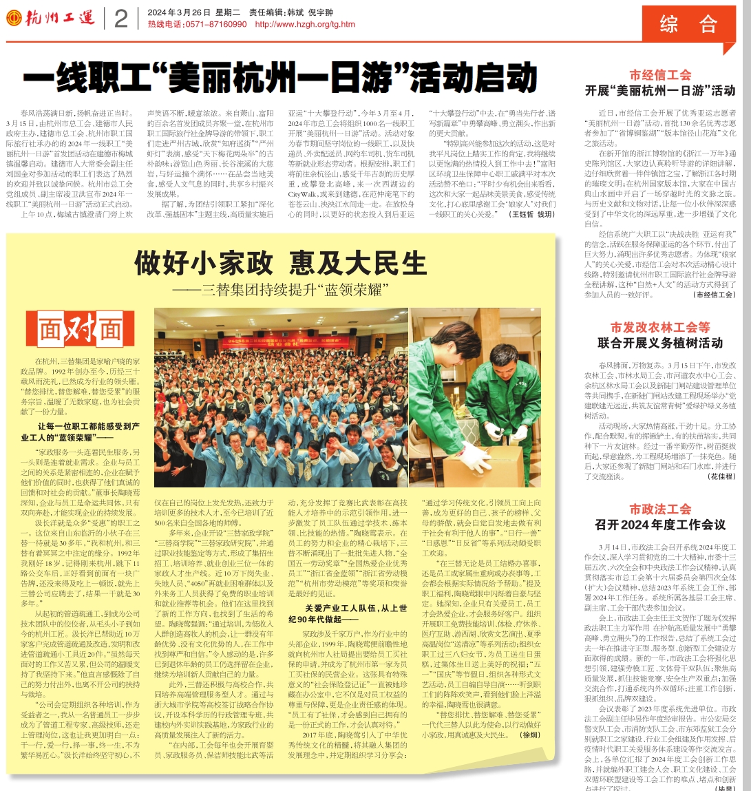 杭州工會刊發報道 | 做好小家政 惠及大民生——三替集團持續提升“藍領榮耀”